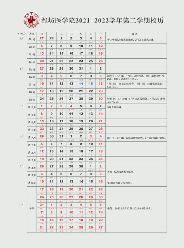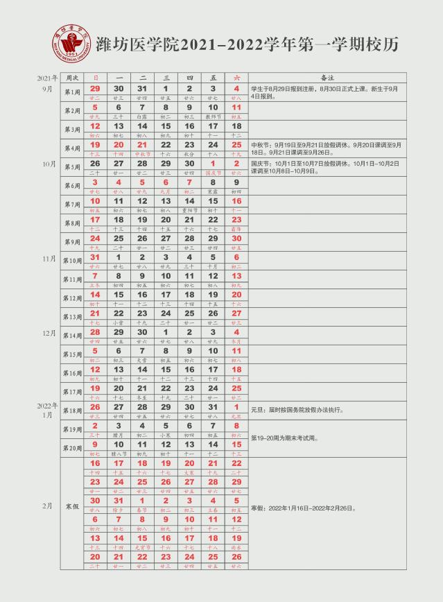 2021-2022学年校历查看